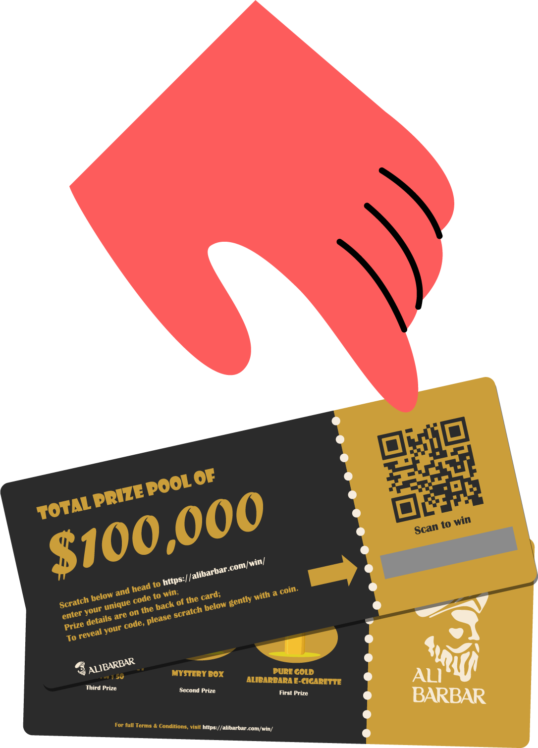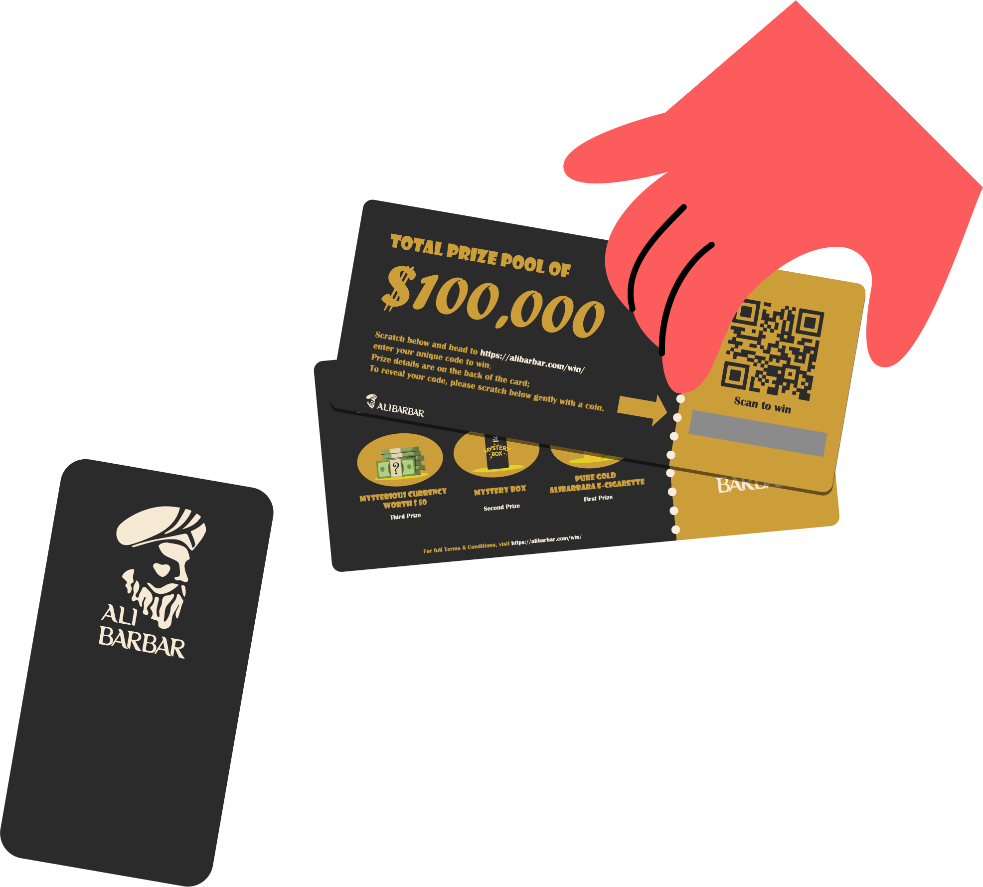 Purchase an Alibarbar vape, scratch the card inside to reveal your code.